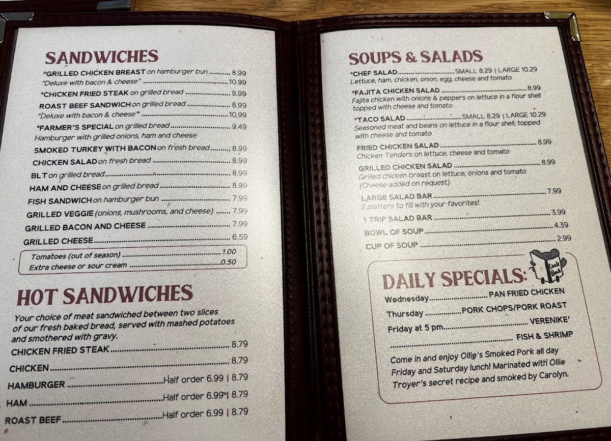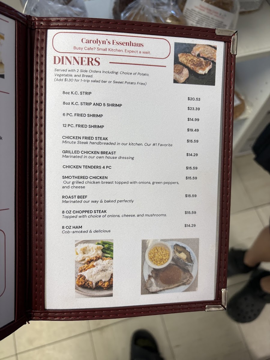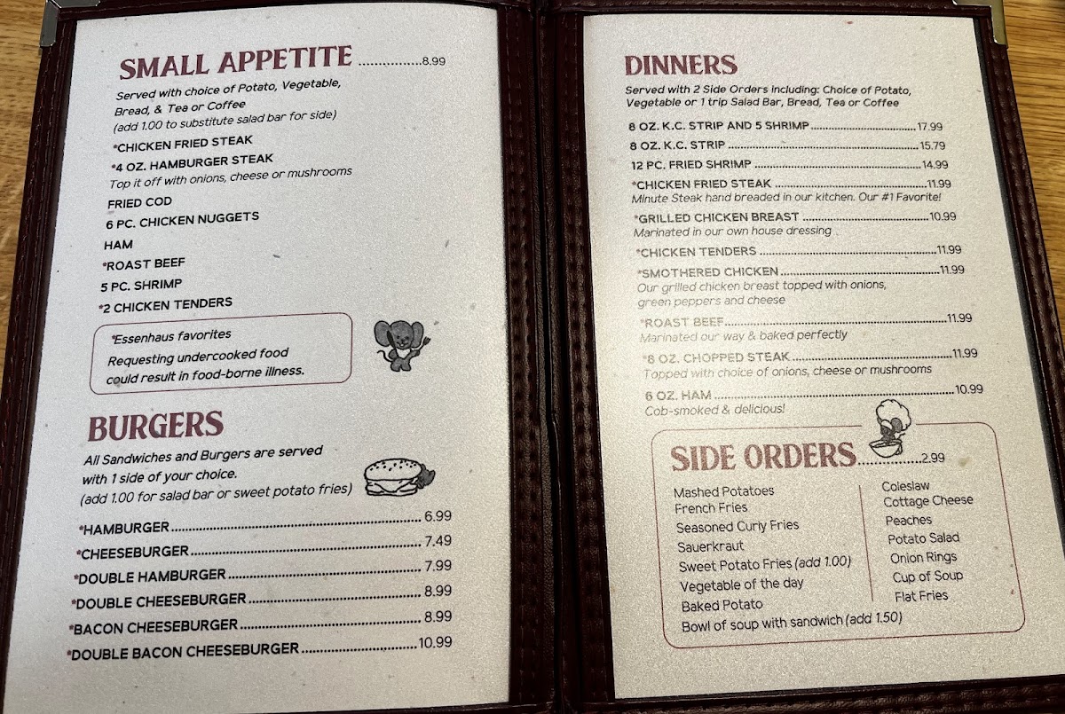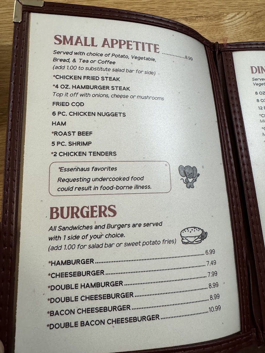 Welcome to Carolyns Essenhaus, a delightful culinary gem located at 104 Main St, Arlington, KS. This charming eatery specializes in both lunch and dinner, boasting an enticing menu primarily centered around succulent burgers, with prices that make dining here a steal. Options like the classic Hamburger for just $6.99 and the indulgent Double Bacon Cheeseburger for $10.99 highlight the offerings.